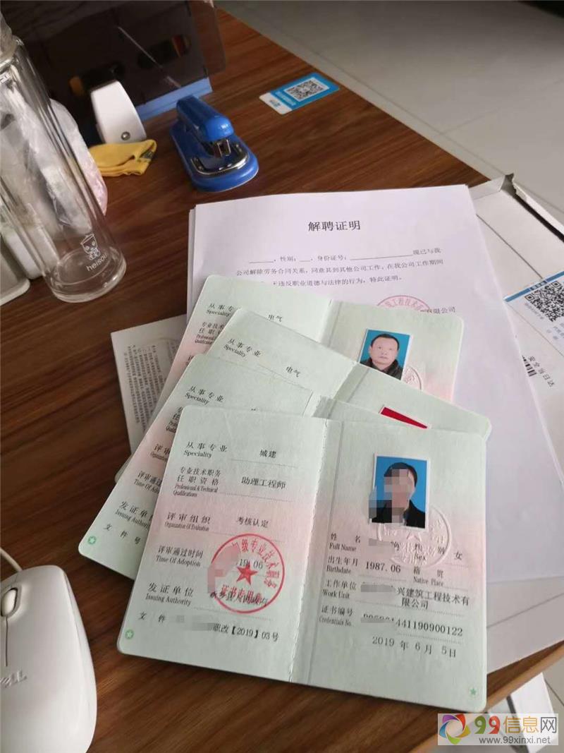 另有:中级职称,八大员、三类ABC证新办复审,安监局特种工电工焊工证、建筑起重设备操作证等9.9.信.息.网