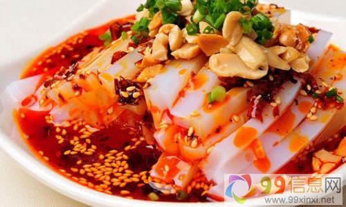 欢迎www.99xinxi.net元老《东京梦华录》称北宋时汴梁已有“细索凉粉”。制作方法:将绿豆粉泡好搅成糊状,水烧至将开,加入白矾并倒入已备好的绿豆糊,放凉即成。白色透明、呈水晶状。www.99xinxi.net