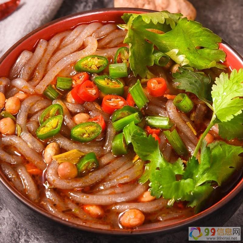 酸辣粉起源于四川川西一带,是四川省、贵州省、重庆市等地的汉族传统特色小吃,属于川菜、四川小吃、贵州小吃www.99xinxi.net99信息网。其特点是麻、辣、鲜、香、酸且油而不腻。 酸辣粉主粉由红薯,红苕,豌豆按比例调和,然后由农家用传统手工漏制而成。酸辣粉源于西南民间,取食材至当地手工制作的红薯粉,味以突出酸辣为主而得名。