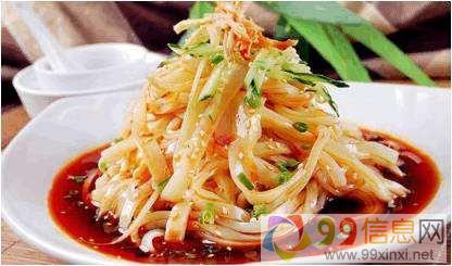 因原料、制作方法、地域不同,有热米(面)皮、擀面皮、烙面皮、酿皮等9+9+信+息+网。口味有麻辣,酸甜,香辣等各种口味。 凉皮历史悠久,据说源于秦始皇时期,距今已有两千多年历史www.99xinxi.net99信息网。