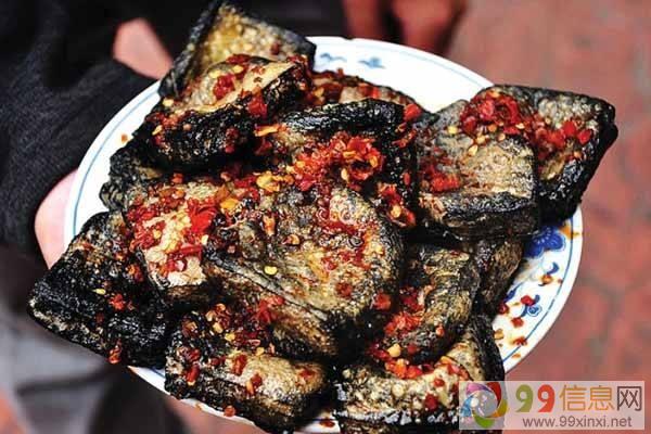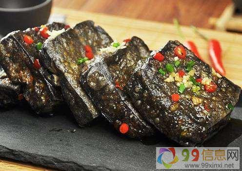 臭豆腐:(Stinky tofu),中国传统特色小吃,在各地的制作方式、食用方法均有相当大的差异,有北方和南方的不同类型,臭豆腐在南方又称臭干子来自www.99xinxi.net。其名虽俗气、却外陋内秀、平中见奇、源远流长,是一种极具特色的中华传统小吃,古老而传统,令人欲罢不能。制作材料有大豆、豆豉、纯碱等9+9+信+息+网。