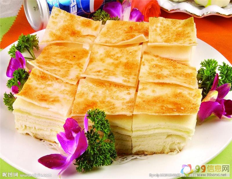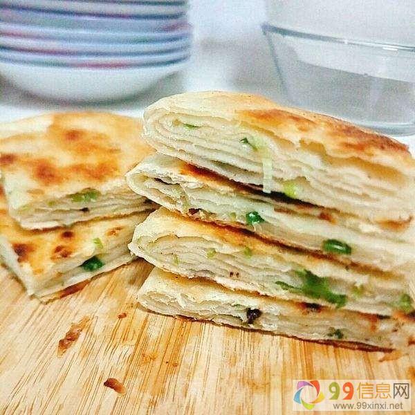 千层饼是山东传统的小吃,美味的小吃,这类饼的外面有一层一层面皮包裹着,里边是一层一层的,特别的好吃,并且熟了以后外面是金黄色的,里边特别的酥软,热着吃一点也不腻,凉着吃味道特别的好,不仅好看,并且还好吃9~9~信~息~网。