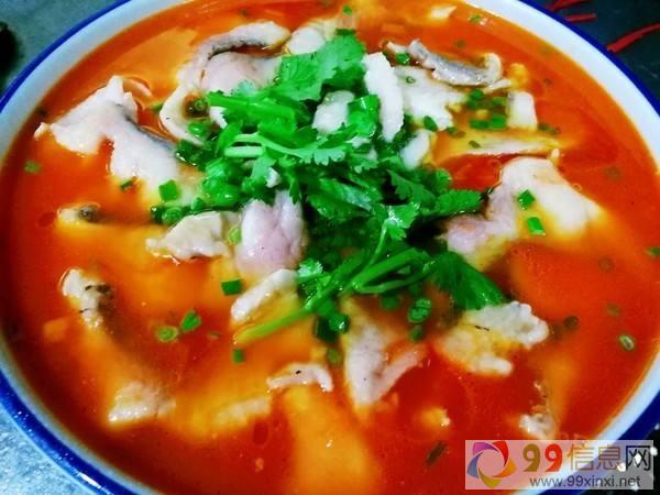 5、汤炖到比较浓的时候,倒掉泡着的鱼片的黄酒和水分,将鱼片倒到番茄汤里,大火煮一小会儿,大部分鱼片变色后,开小火煮3、5分钟,不能煮太过,以免鱼片煮老9.9.x.i.n.x.i.n.e.t。