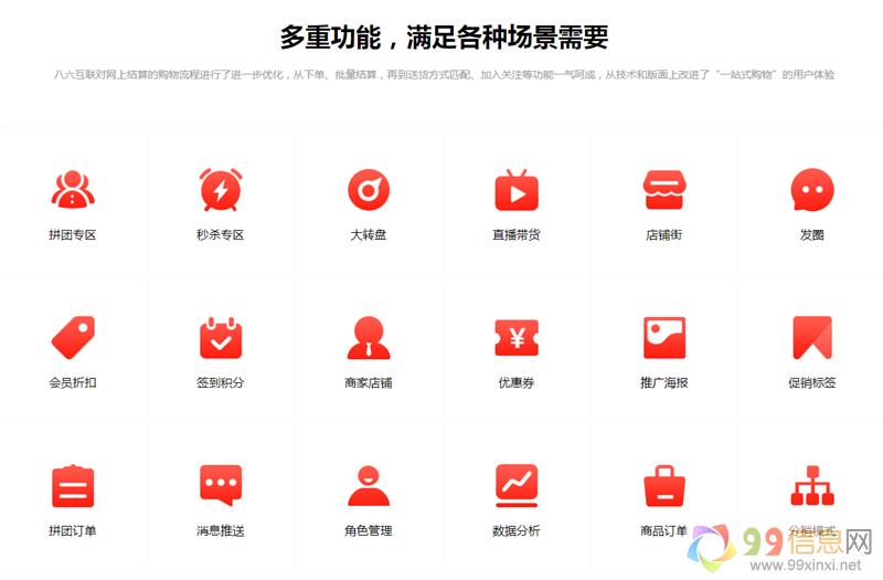 全新风格,带来更加便捷完善的使用体验,稳步提升成交率,完全符合现代商城特色,细微处尽显匠心www.99xinxi.net99信息网。